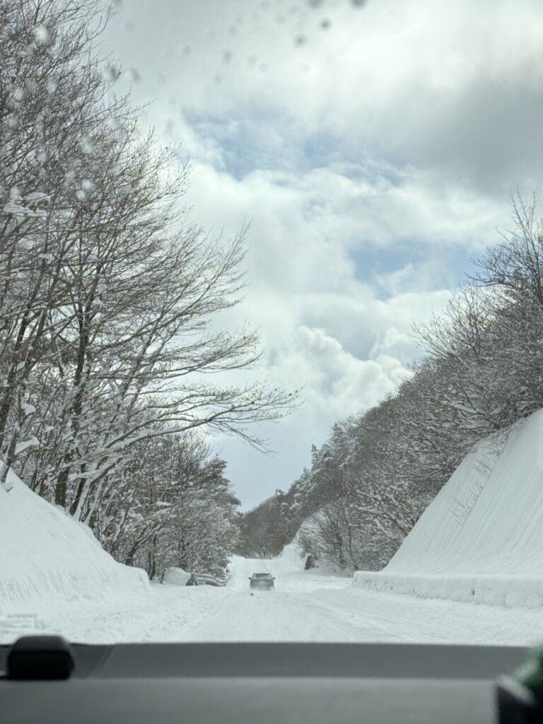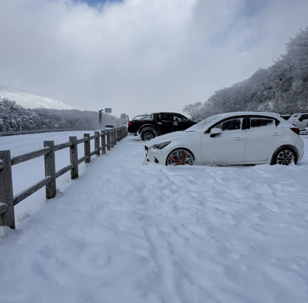 今回も牧ノ戸峠に行ったんですが、今までに行ったときは峠に入ってから道に雪が出てき始めていたんですけど、昨日は峠に入る前の街中でも道路に雪が積もってて一面真っ白でした⛄