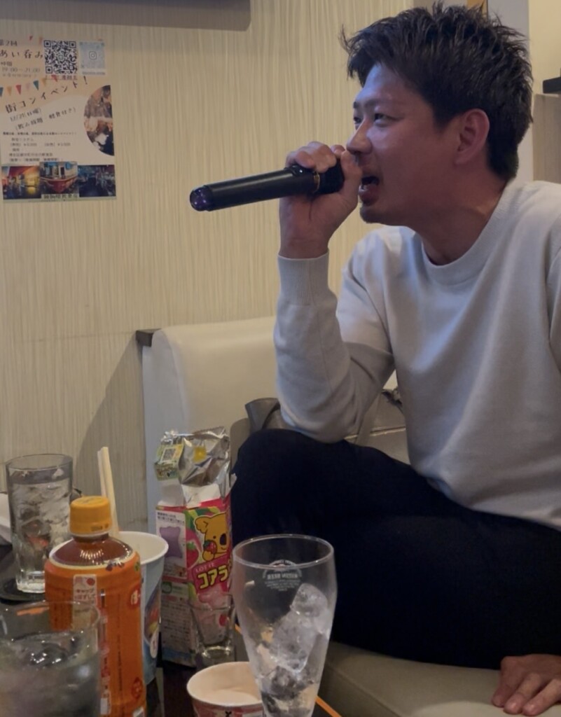 その後、みんなでBARに行きました。社長がカラオケ対決しようとうるさいのでしかたなくやってあげました(笑)なんか、ハンデ10点とかも言ってきたので仕方なくのみました。(笑)社長が勝ったらはたえにテキーラで私が勝ったら1000円というルールで戦いました😊(圧勝で勝って1000円もぎ取ってやりました)
