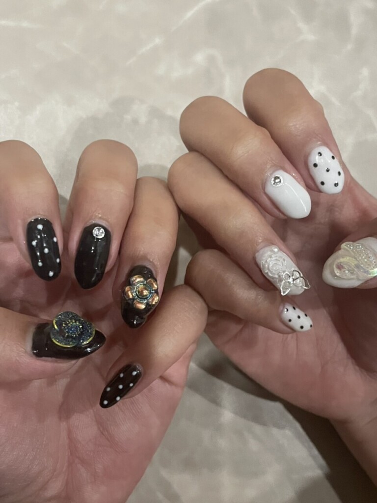 そういえば、ネイル変えました(笑)💅だいぶ前ですけど、、、(笑)したいことを詰め込んだら主張激しめネイルに変わってしまいました😨ちなみに、右手の蝶々は、もうパーツが折れていなくなってしまいました。(笑)やっぱり私、パーツは向いてないみたいです。(笑)気を付けていたんですけどねえええ(笑)洗濯物とかに絡まって邪魔です。かわいいんですけど、ガサツ女には世界が違うみたいです、、、。