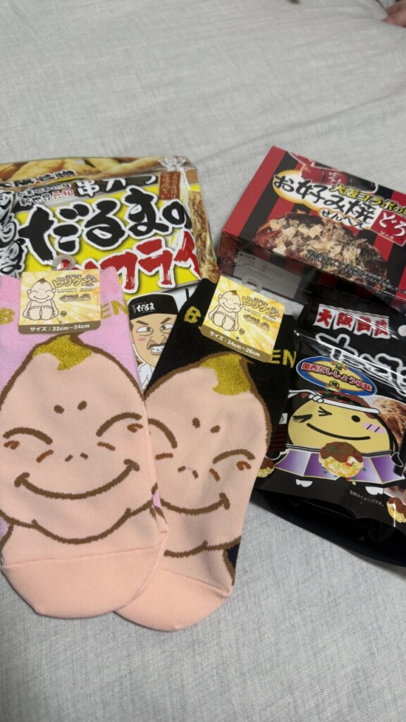 この前はあの、おともだちえちゃんから大阪みやげもらいました😊お菓子とっても美味しかったです🍫⊆(・ °・)オカシあと靴下もらいました😋大阪いったことないから行ってみたいんですよねええ!!