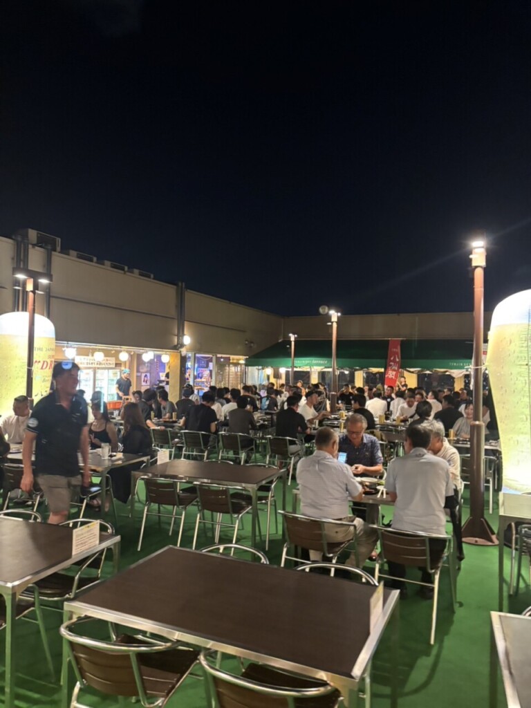 場所は大丸近くのビアガーデンで天気大丈夫かな?