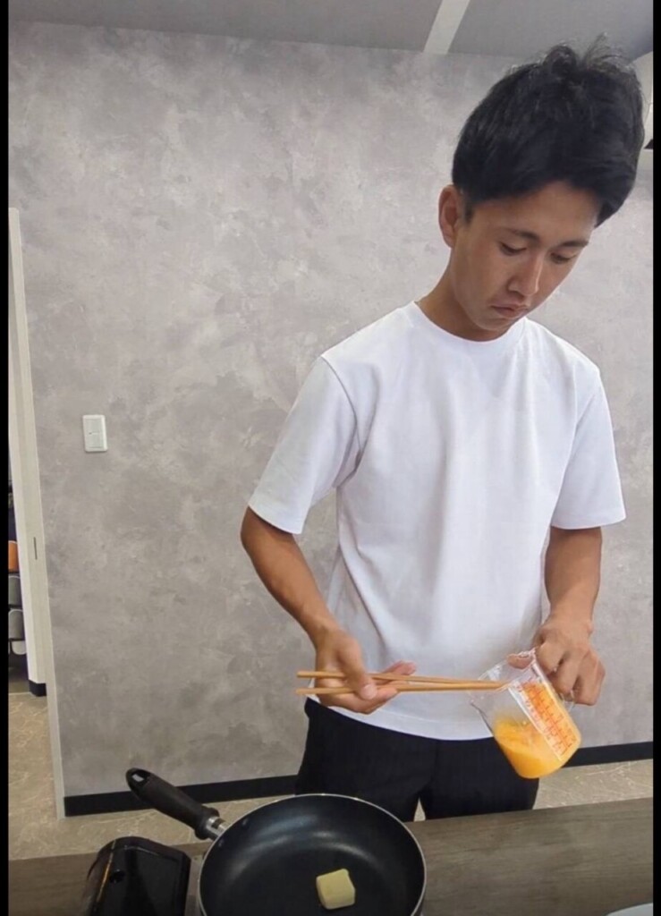 しようという事になり高田とオムレツ作り対決を行いました!!