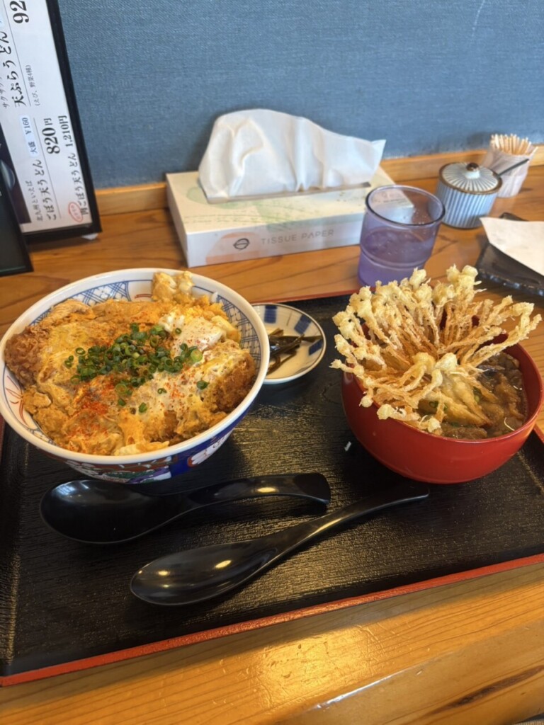 その前に少しおなかが空いたのでうどん屋さんに行きかつ丼とミニうどんを