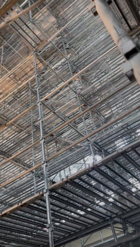 やはり大型の棚足場は通常のマンション棟とは違い壮大な見栄えで足場に上りたくなります!笑