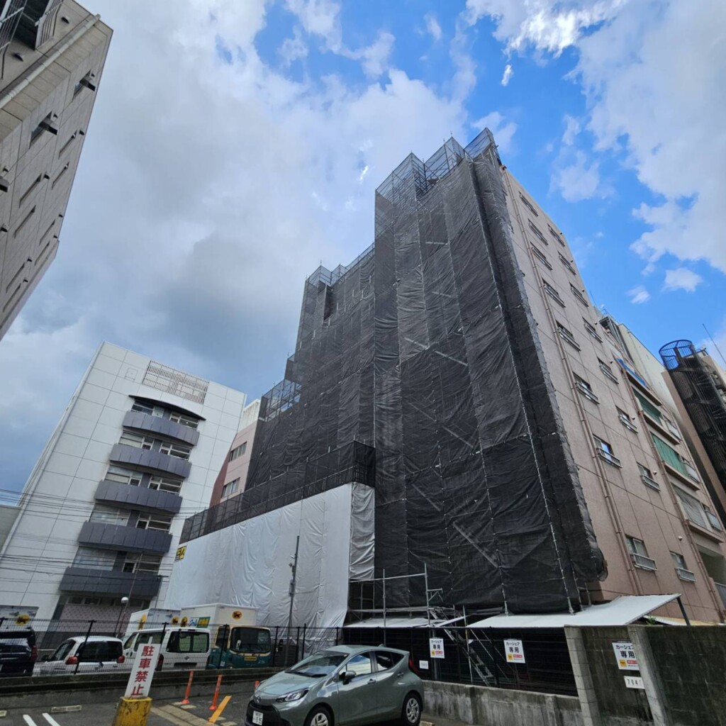 A社様福岡市中央区某マンション中規模改修用足場ご依頼ありがとうございます。