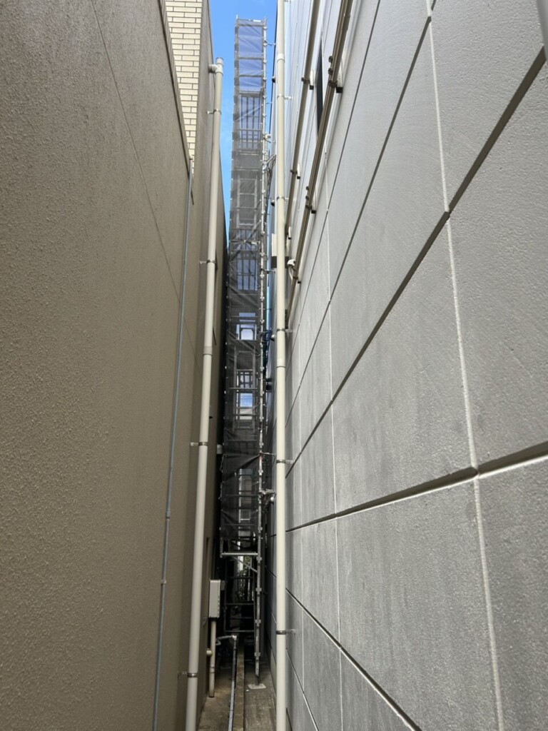 足場の組み立てを行っていきましたが建物同士がとても近く