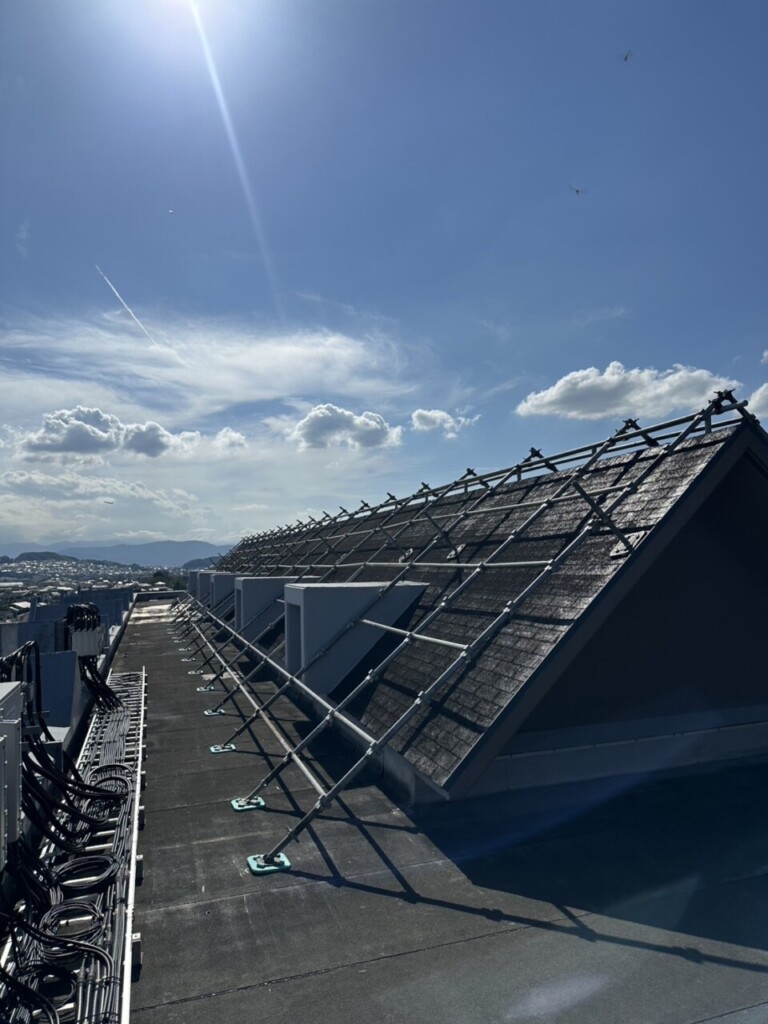 防水屋さんが滑る可能性があった為屋根足場を組立て安全に作業できるように