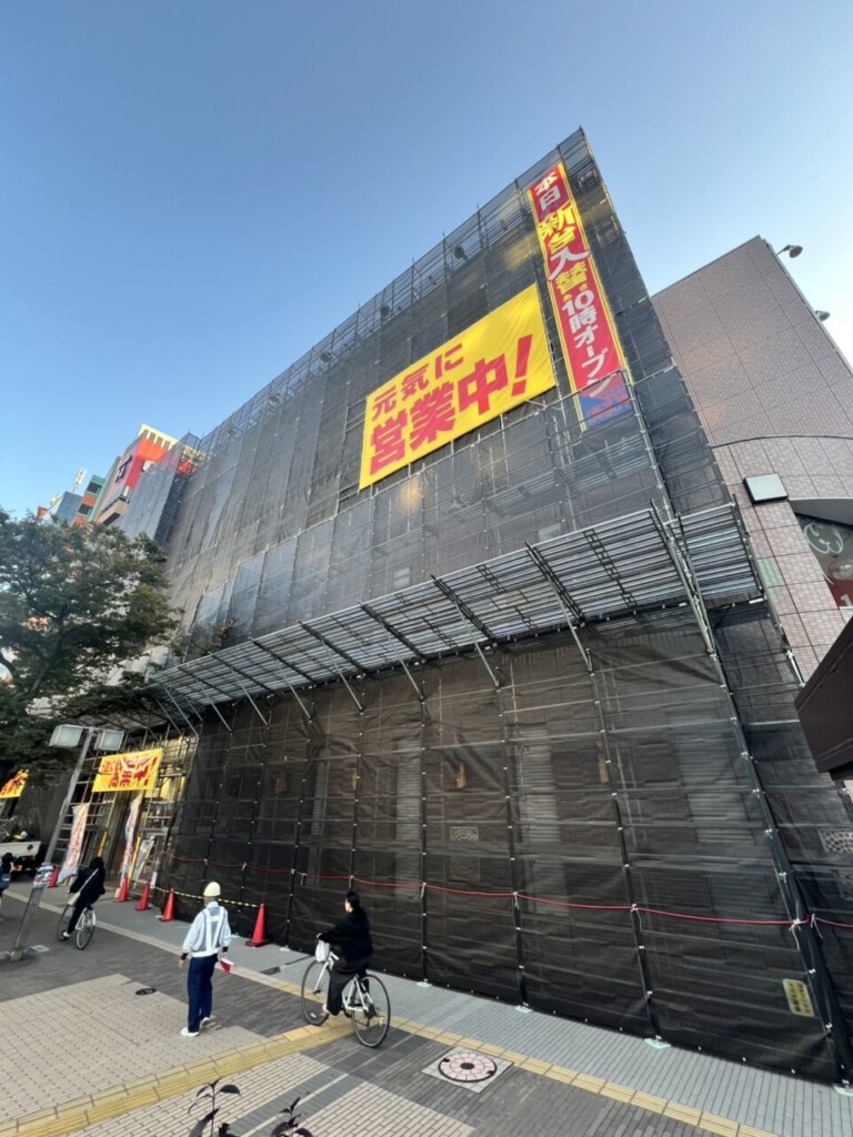 必要に応じて作業を止め歩行者様最優先で足場組立を進めていき