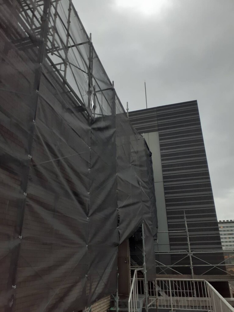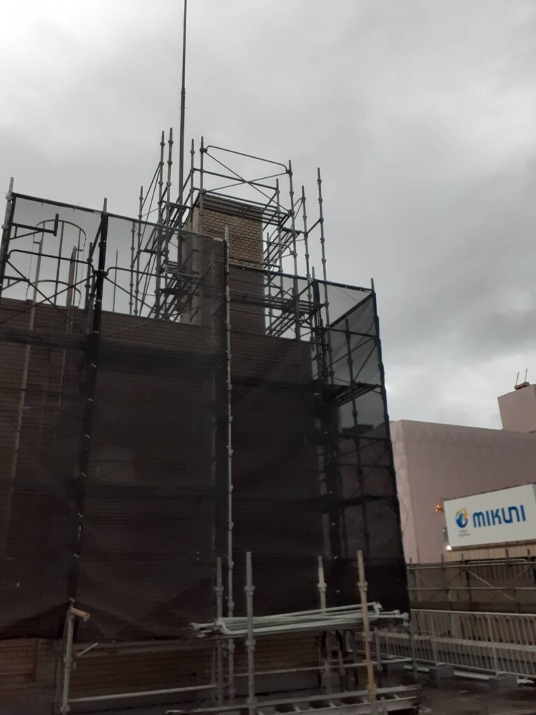 A社様福岡県宗像市某ビル屋上外壁修繕工事用足場ご依頼ありがとうございます。