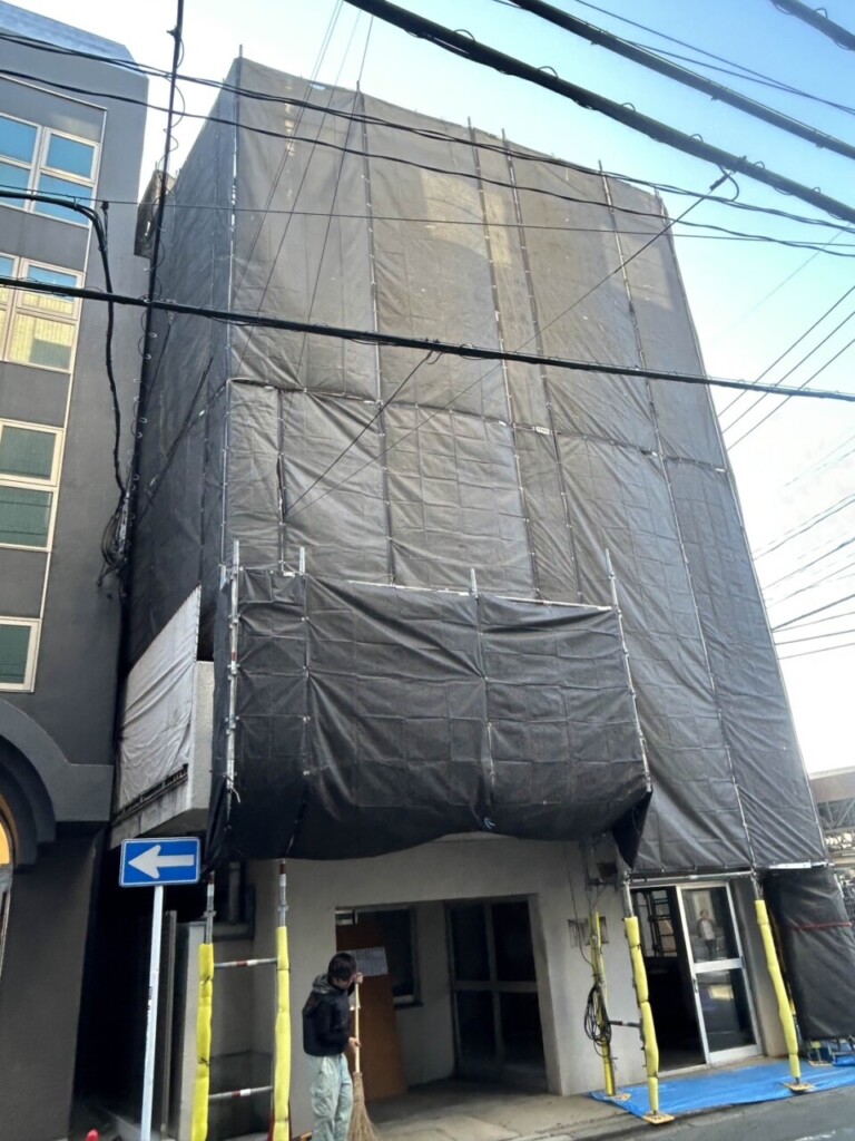 取付を行いビル使用者様の安全対策も行い足場組立を完了することができました。