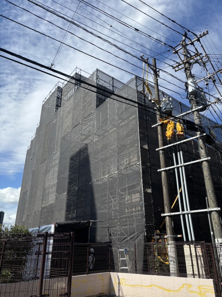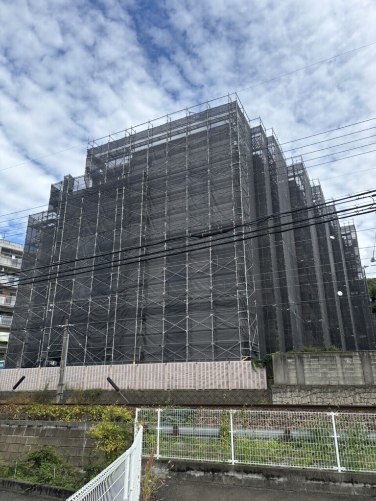 D社様福岡県筑紫野市某マンション大規模改修用足場ご依頼ありがとうございます。