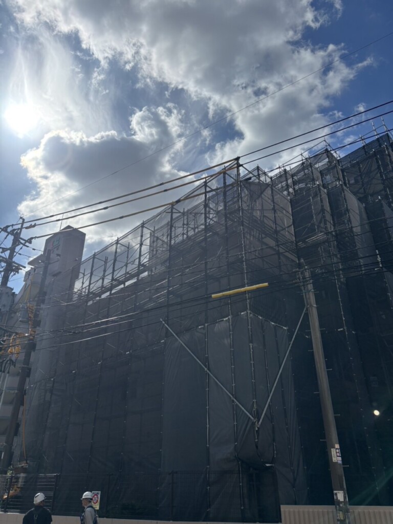 足場組立中は常に誘導員さんが見張りをしてくださり第三者様との