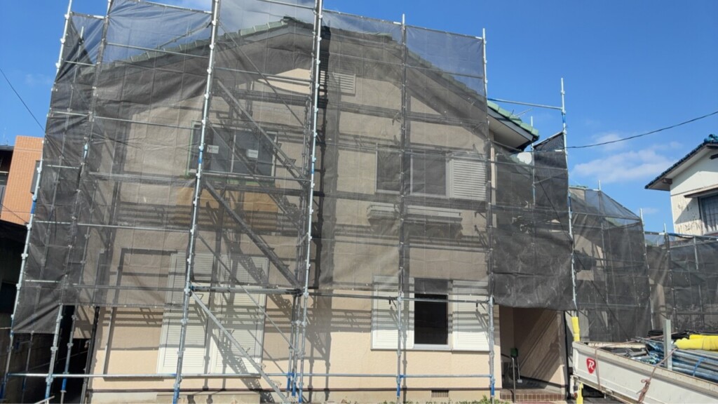 今回は足場を立てるうえで隣地越境等はなくトラックも