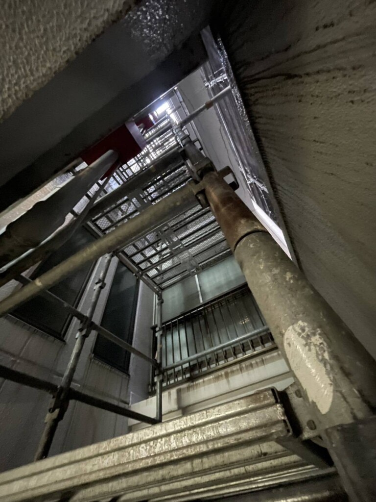 足場組立の際は施設EVを使用させていただき足場材の搬入を