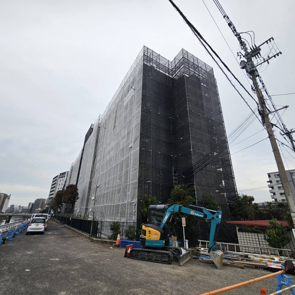 クリアメッシュシートを使い飛散防止対策を行いました。