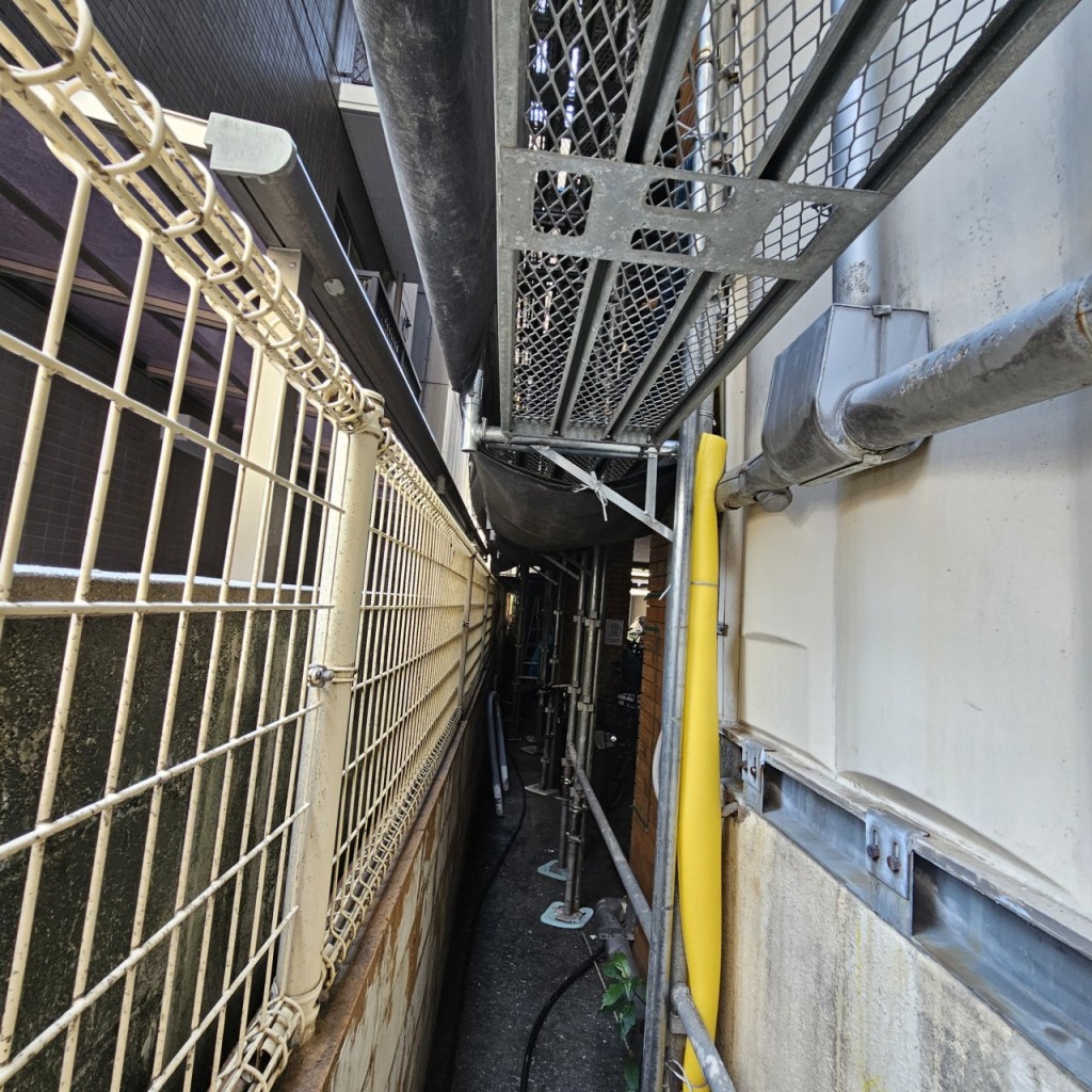 また、基本隣地を越境するので1足で組むため単管補強などを入れ規定の強度までもっていかなければならないなど