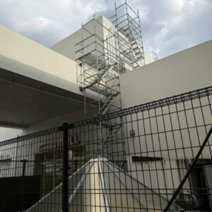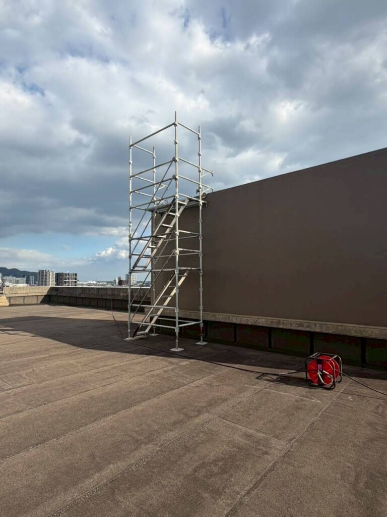 今回の物件は屋上用へのばるための昇降用足場の組立をさせて頂きました。
