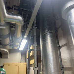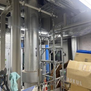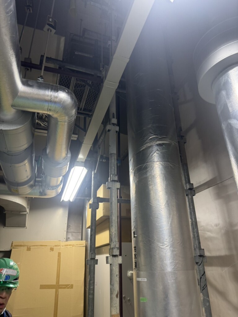 地下での作業になり色々な機械がある状況での資材の搬入になり、資材をためるスペースも限られいた為運びながら組立を同時で行い作業を進めていきました。