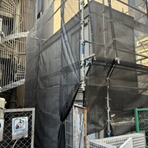 飛散防止としてはメッシュシートを取り付け塗料などの飛散を防止いたしました。