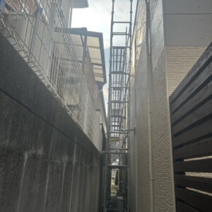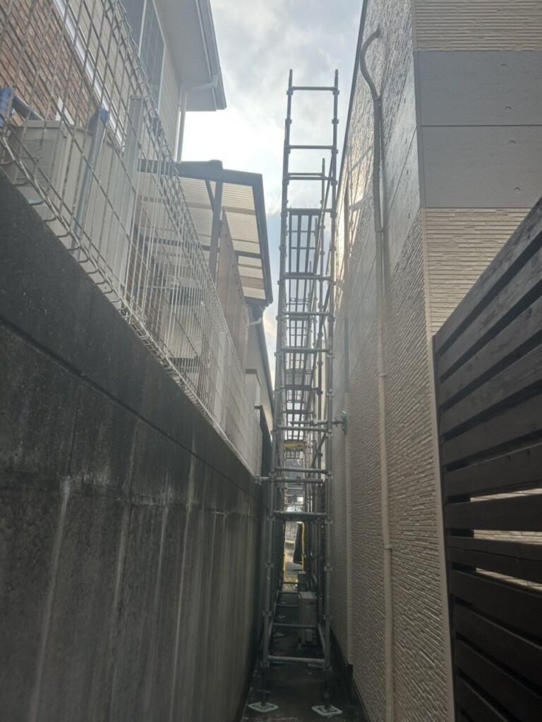 今回の物件は住宅の裏側のシール打ち替え工事用の足場組立でした。