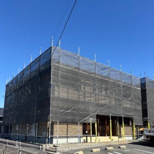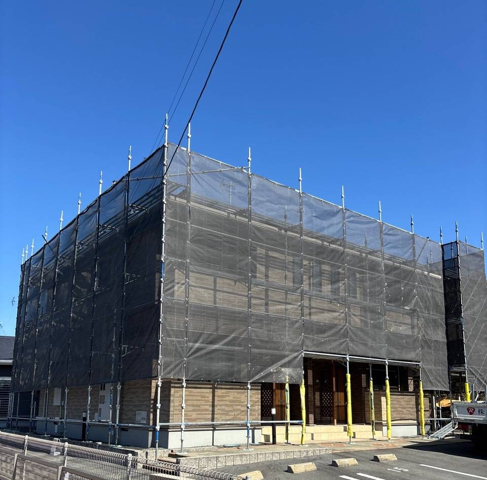 この物件は敷地も広くトラック配置場所にも困らず、スムーズに足場組立を行うことができました。