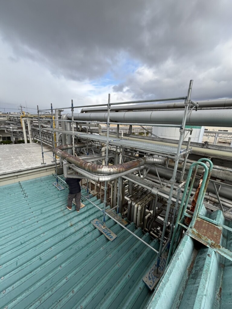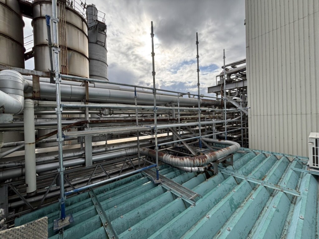 また、足場の量的には多くないのですが配管の新設などもあり、組立ながら元請け様と確認をし手戻りが無いように進めていきました。