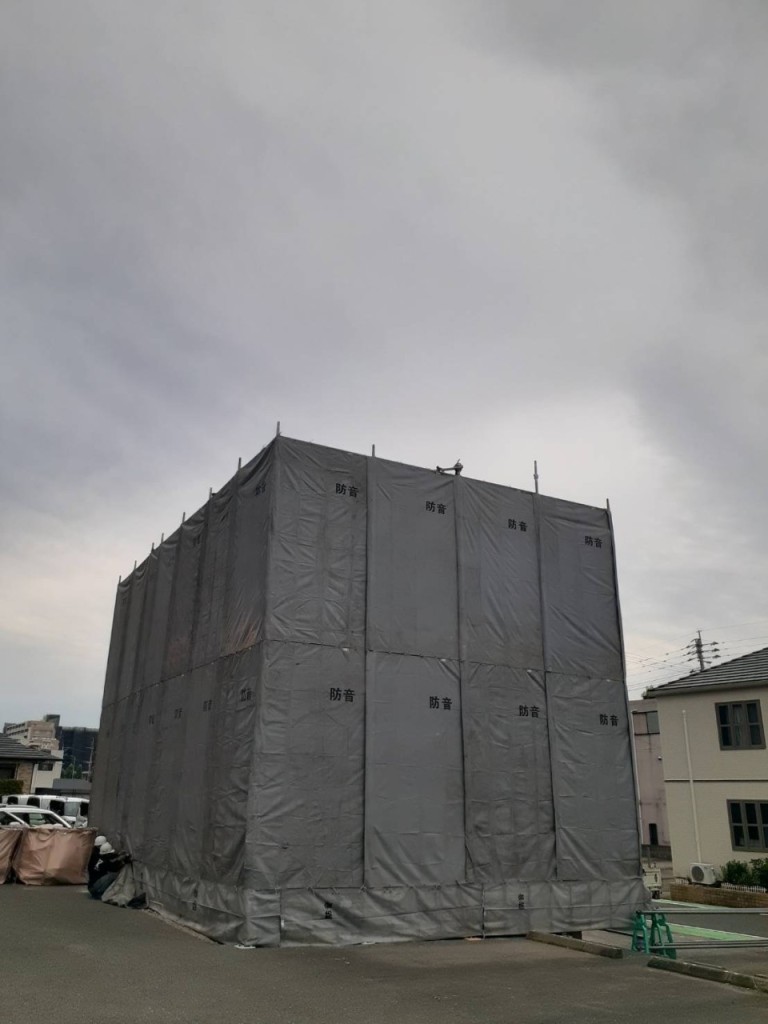 ただ近隣住宅等の関係もあり飛散防止対策だけではなく防音対策も行い防音シートを