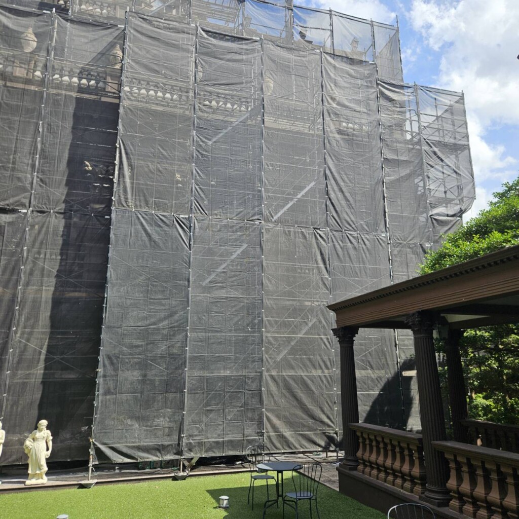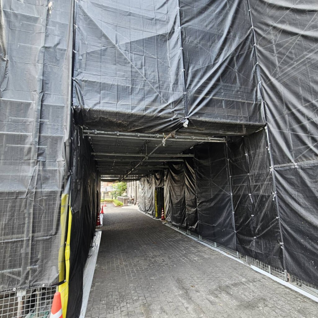 音の問題、足場組立作業の制限がありかつ工期もある中での作業でしたので