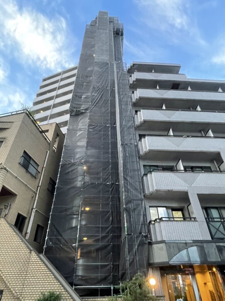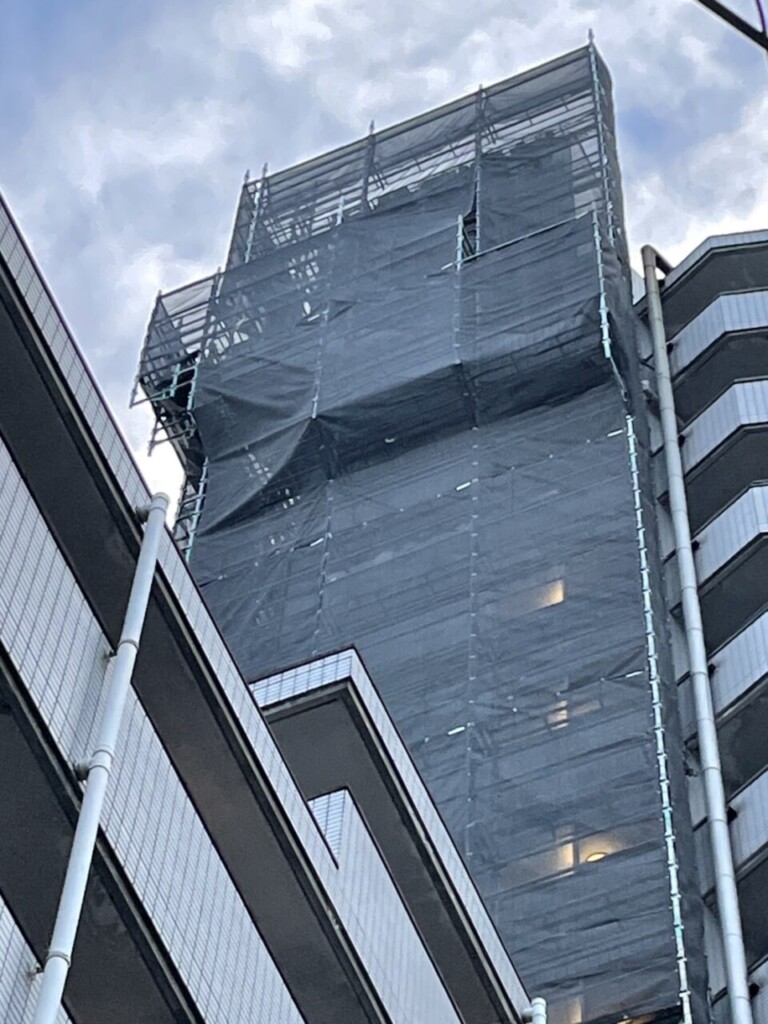 F社様 福岡市某マンション 部分改修用足場の足場工事のご依頼ありがとうございます。