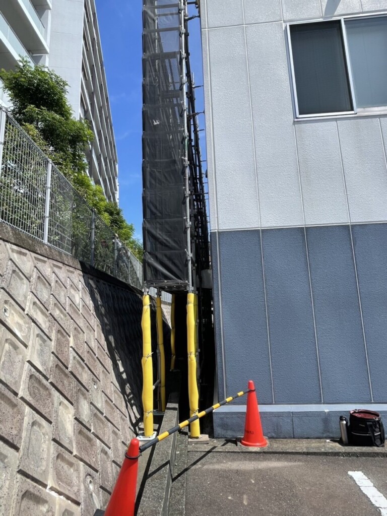 室外機等もたくさんあり足場の割り付けや室外機を気づ付けないよう