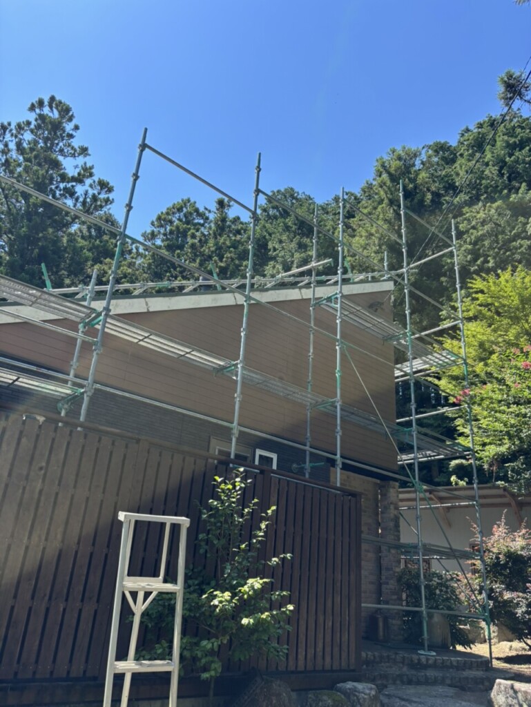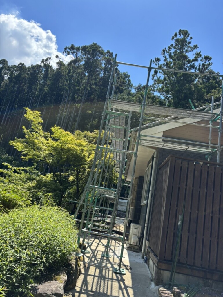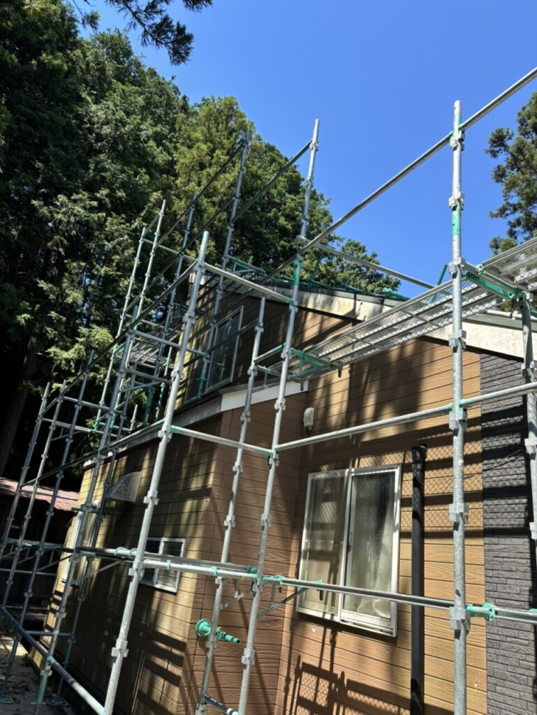 今回は屋根足場も組み立てたので通常の住宅足場よりは強固になっているので