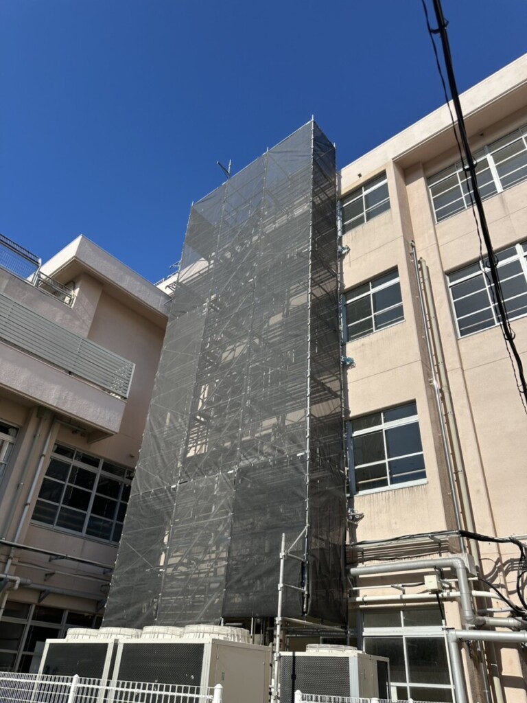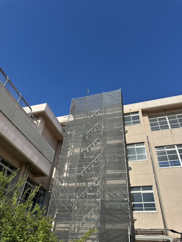 O社様福岡市東区某学校屋上防水用昇降足場ご依頼ありがとうございます。